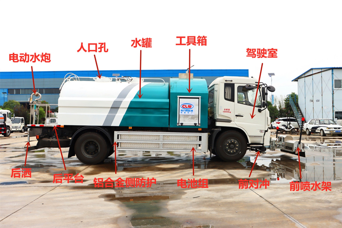 (1) 水箱充分利用了车载空间,容积大,可达10m3。罐体内部做防腐防锈涂层     。